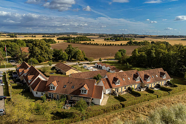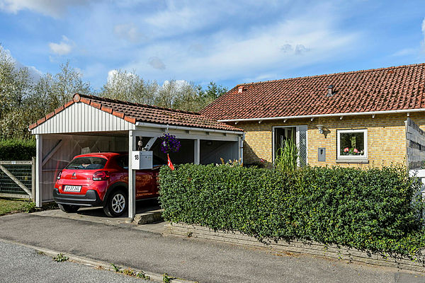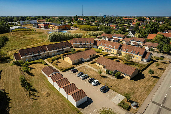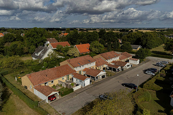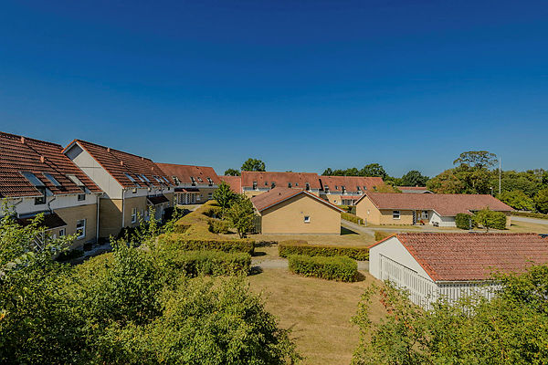 Skønne grønne fællesarealer, fælles parkeringspladser og til bebyggelsen hører også et fællesrum.